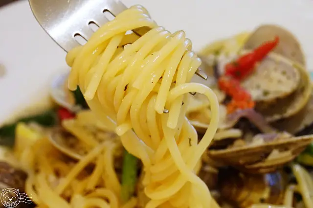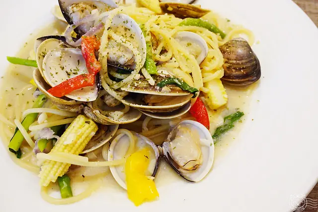 這道蚌蚌鮮蛤義大利麵(白酒清炒)湯汁沒有收乾,