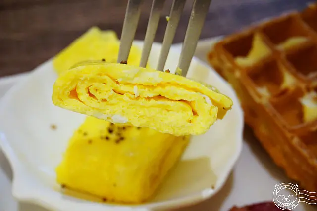 煎蛋小小塊卻不馬虎,層層疊疊有點像蛋捲,