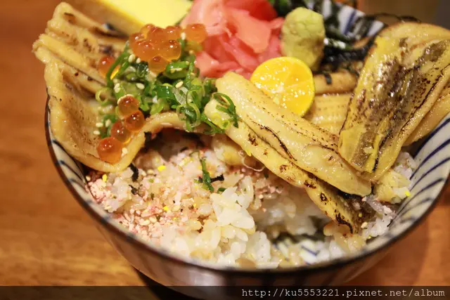 民生路近民生綠園,招牌丼丼丼(洞洞洞)三字相連做為設計概念,雖問店員老闆是店員有點顧忌,但小高可以確定與麵屋列同老闆,相同的裝潢與擺設,連行銷模式都相同(製造人潮),雖然這套模式很管用,但如果沒顧CP值那也只是一時的。