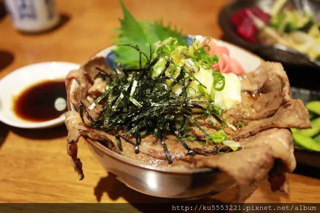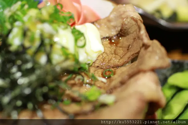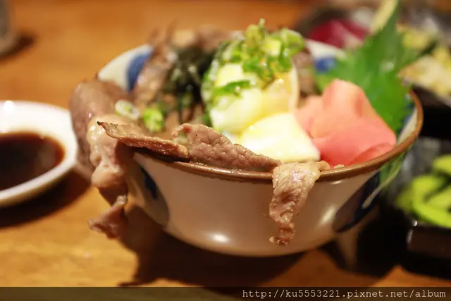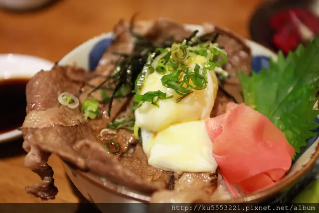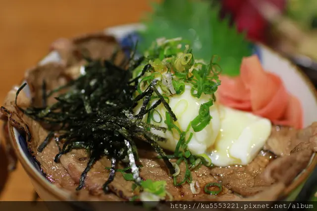 炙燒過牛小排,再加上溫泉玉子,加上海苔絲與蔥花相當美感。