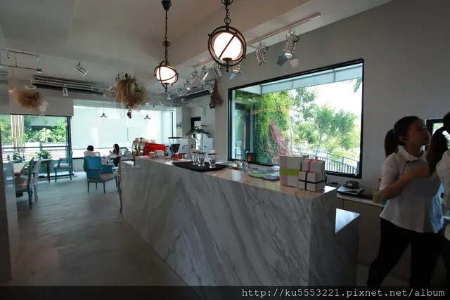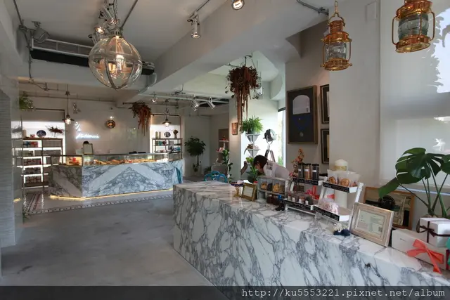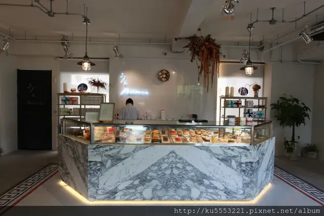 這個櫃台是擺甜點主要的地方,大理石的櫃台下面鏤空加燈具,讓這個頗重的櫃台飄浮起來變輕了。