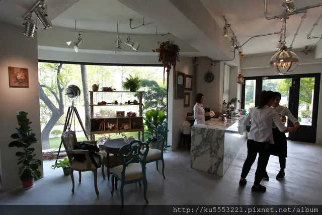 小高車子就放在尚品咖啡前面,走過來就被這個美麗的跟園藝造景給吸引。