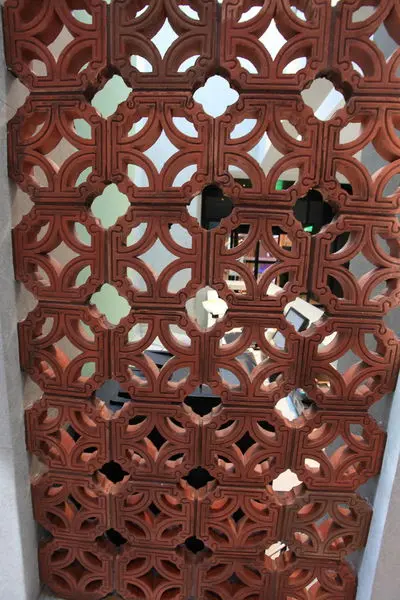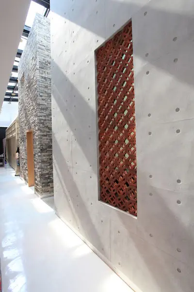 清水模牆搭上中式的窗花還蠻搭的。
