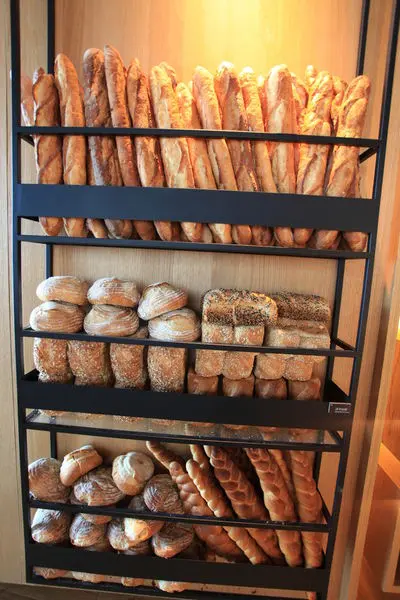一堆歐式麵包都是假的裝飾品甜點區。