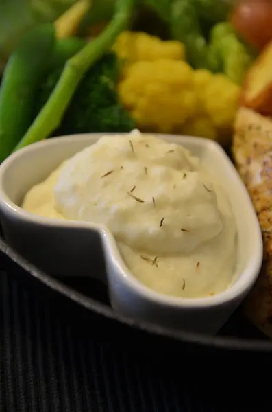 餐點上桌時,我們就在猜這可愛的愛心碟裡像Cream的是什麼東西啊?!