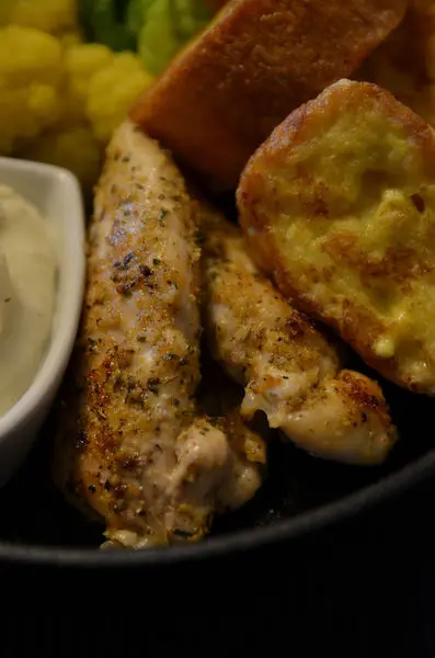 用香草醃製的雞柳很入味,香而不油,吃起來有著天然香料的清新!