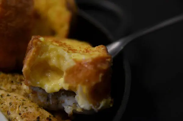 煎到外表金黃色的法式麵包,咬了一口後,裡面卻是濕潤的,