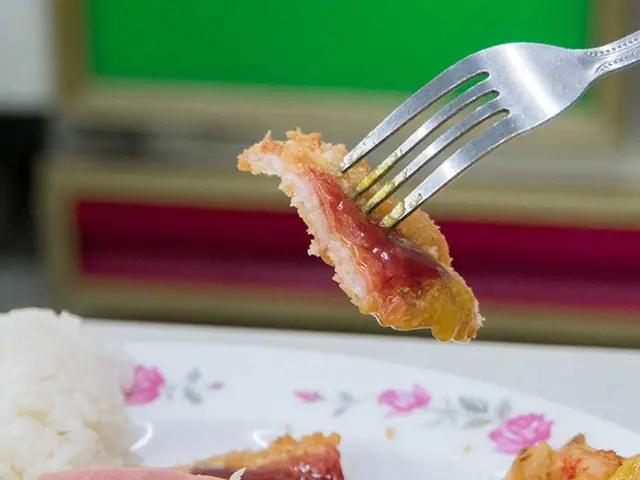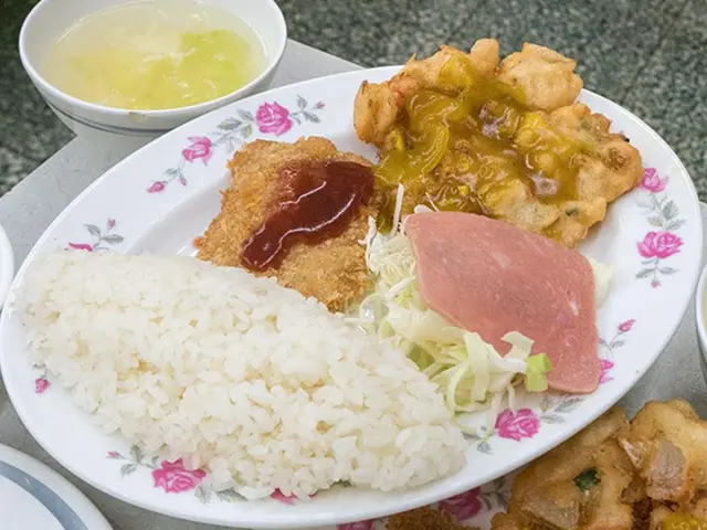 炸豬排搭配番茄醬來享用,口感上勁道十足,整體表現中規中矩,但是有著滿滿的小時候的味道