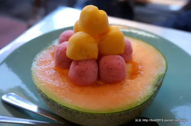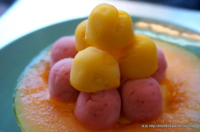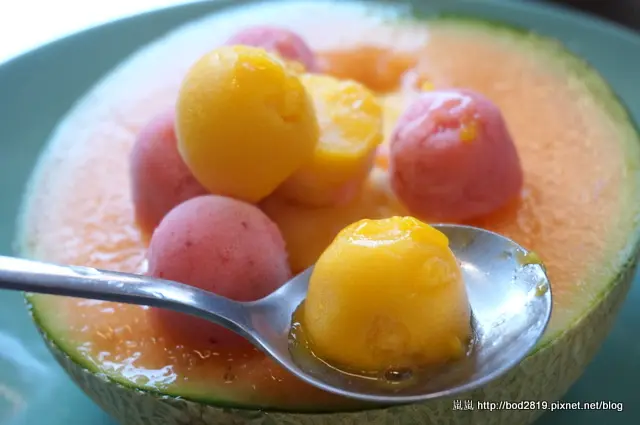 酸酸甜甜又很綿密,搭配哈密瓜果肉