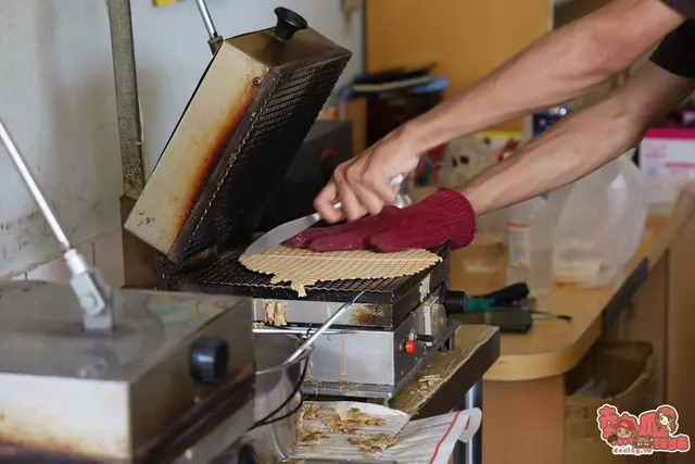店鋪前可以看到人員正在現場製作著煎米餅,米餅烤好後發出ㄆ一ㄚˋㄆ一ㄚˋ聲響,讓我想到小時候路邊看到爆米香也是這樣,圍繞在店鋪前除了人潮外,就是陣陣米香,那純粹的糙米香味聞起來好舒服,也吸引了不少客人前來觀看~