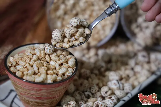 紅薏仁米香比較大顆,上層富含豐富的麩皮,糖霜的口感吃起來甜甜的,但又不死甜,直接整把抓起來往嘴裡倒這樣吃最爽~熱血自己的吃法是將糙米米香與紅薏仁米香混合在一起,吃起來特別有咀嚼感,香氣也更迷人啦