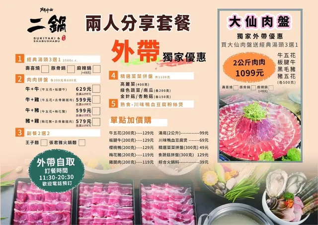 ▼疫情期間提供外帶自取優惠,在家也能享用美味的二鍋壽喜燒火鍋~訂餐時間11:30-20:30,建議可以提前電話預訂才不用現場等太久喔