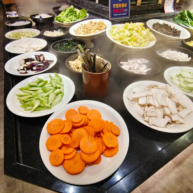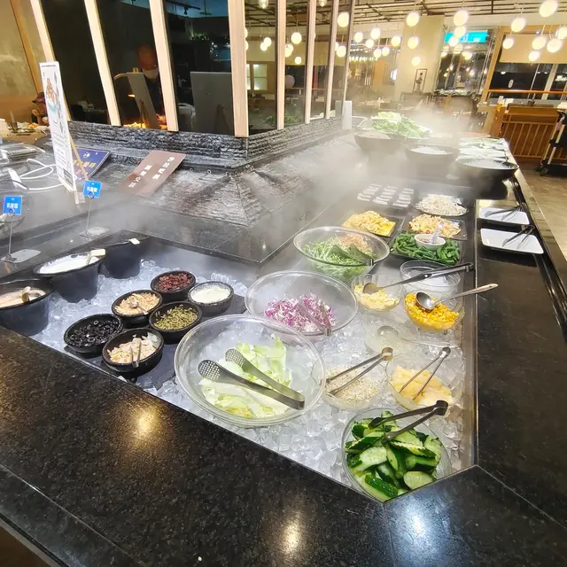 ▼二鍋壽喜燒吃到飽提供超多種食材,自助吧分為好幾區,蔬菜、熱炒、沙拉、甜點、飲料等等,不說還以為在吃餐廳buffet呢,來帶大家逛一圈