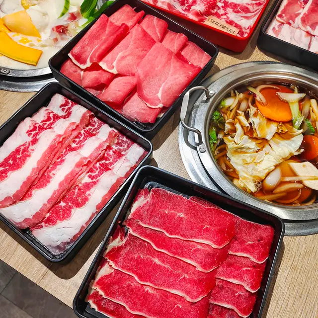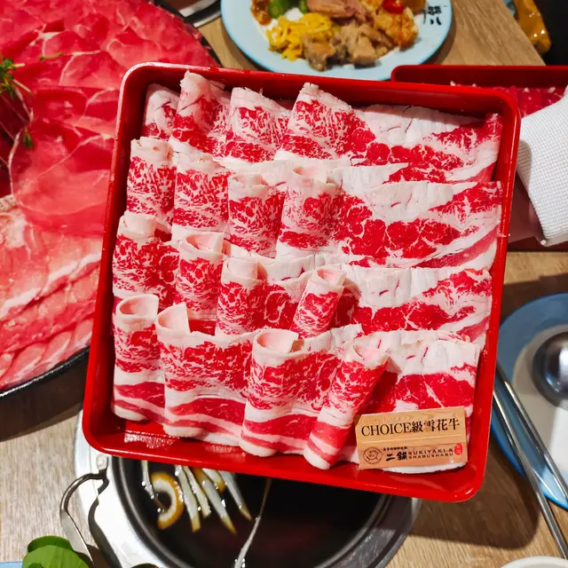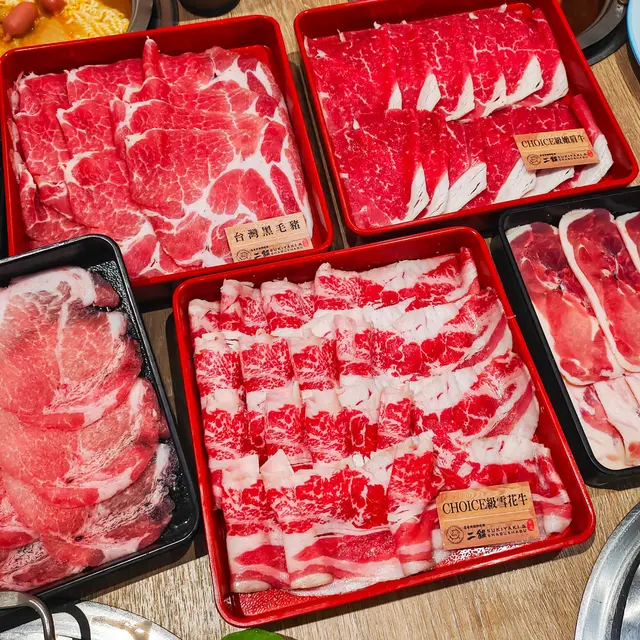 紅盤是饕客升級的三種肉品:CHOICE級雪花牛、CHOICE級嫩肩牛、台灣黑毛豬,美味再升級也是無限量吃到爽哦