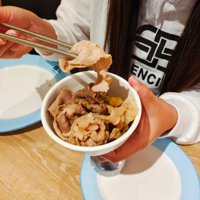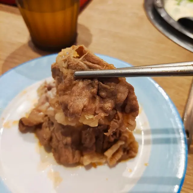 ▼一群瘋狂掃肉的女子,我們桌上堆滿一座肉盤山,其他客人一直看過來XD