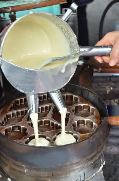 這攤雞蛋糕,是到學甲必吃的美食之一,