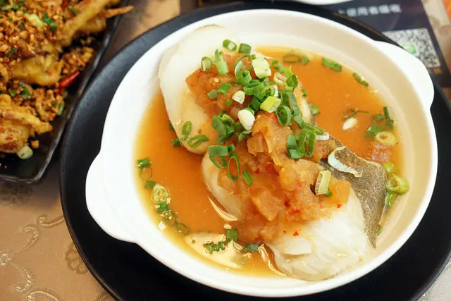 蔭冬瓜蒸鱈魚 這是大家讚不絕口的一道菜,上面的蔭冬瓜是外面很難吃到的味道,吃完後跟老闆聊聊,才知道原來這是老闆特調的蔭冬瓜,裡面加了很多種的辛香料、蘿蔔乾,經過一天的醃製才能使用,聽到這裡覺得我們超級幸運,還好沒有撲空,所以如果想吃這道菜,建議預定一下