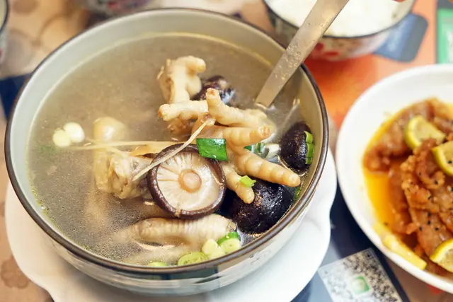 鳳爪香菇煲湯 老闆剛出的新菜色,喝的時候會先聞到香菇味,喝下去後有薑的辛辣感,整個身體都暖和起來,鳳爪因為燉煮火候足夠,輕輕一抿就皮骨分離,吃完嘴唇黏黏的,都是滿滿的膠原蛋白。