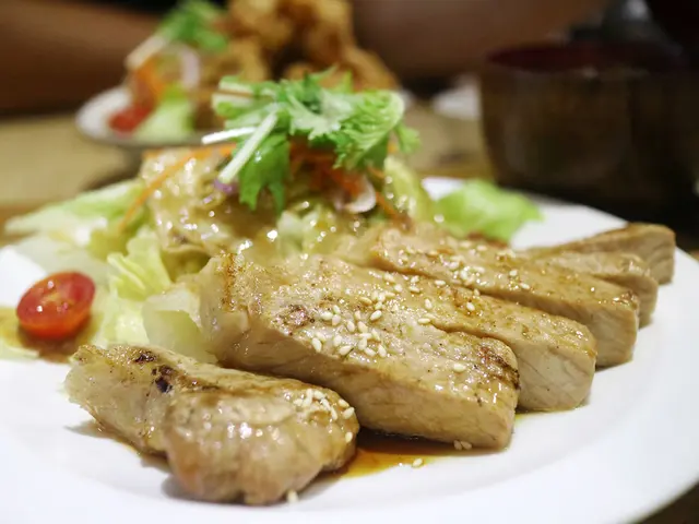 照燒厚切豬排採用豬里肌先醃製後再烤,淋上照燒醬,厚度很扎實口感相當有嚼勁