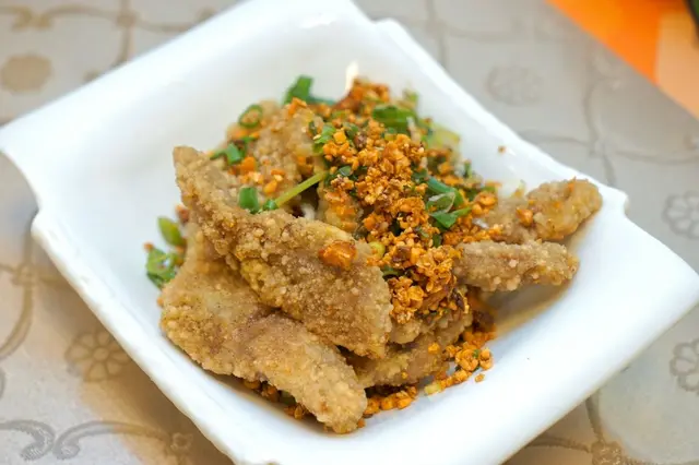酥炸牛排超級嫩,老闆說這一道完全沒有放嫩精,使用天然食材製作,香酥的外皮搭上軟嫩的肉吃,吃一口就感覺置身天堂般,讓我愛上牛肉啦!撒上豆酥提點味蕾,口感更香更有層次。