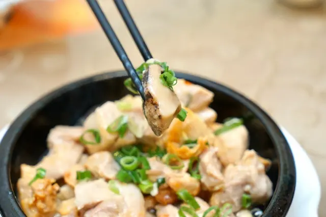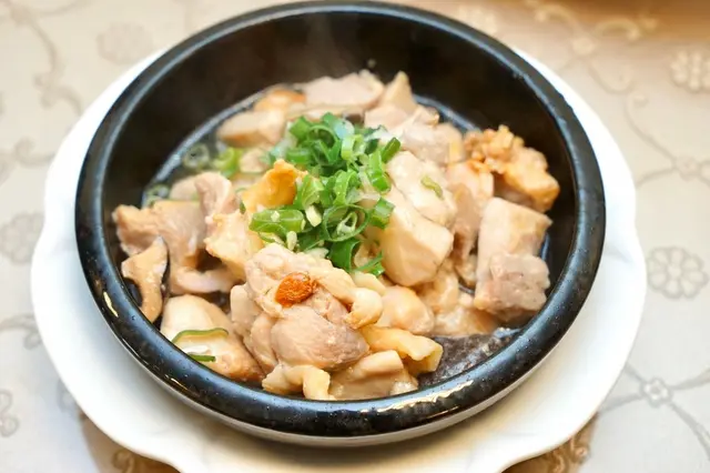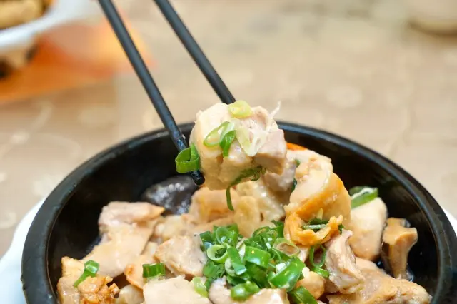 這是一道比較粵式的料理,裡頭加了藥膳、當歸、一點點酒,讓整體的口感很有層次,香氣很凸出,雞肉的部分非常的鮮嫩,每一次咀嚼中,都吃的到微微的藥膳當歸香。