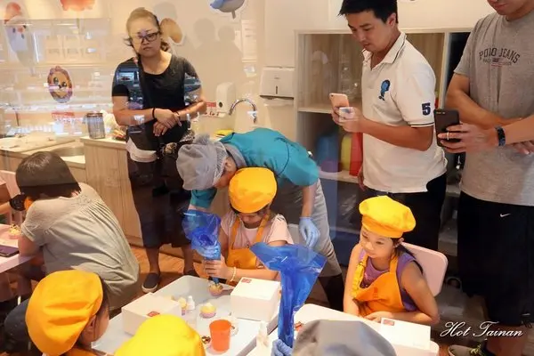 二樓自助烘焙DIY也超夯的,適合學齡的孩童與家長一起動手做,當然如果是情侶想來體驗的話當然也行,而且這邊從選擇要做甚麼到付款還有最後的製作完全都是自己來,真的很特別!