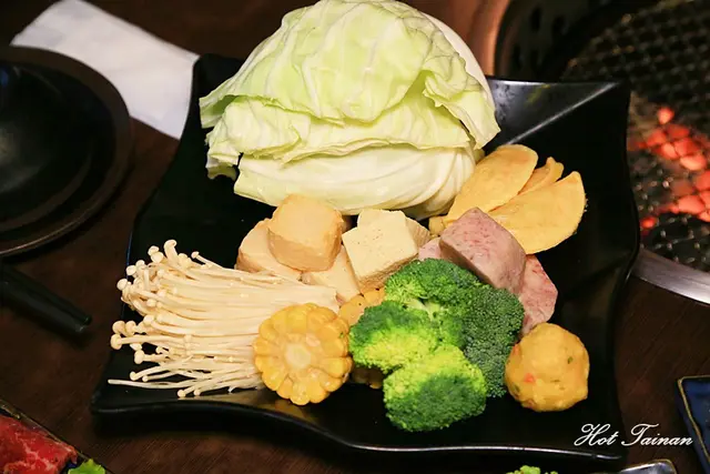 我們選擇的湯底為麻辣鍋,辣度適中~憑良心說,烤肉有個鍋物還真的不賴呢,女生通常很介意吃太多蛋白質,所以有一鍋讓你煮到開心的蔬菜,搭配著肉吃,是不是瞬間解決吃太多肉的問題~