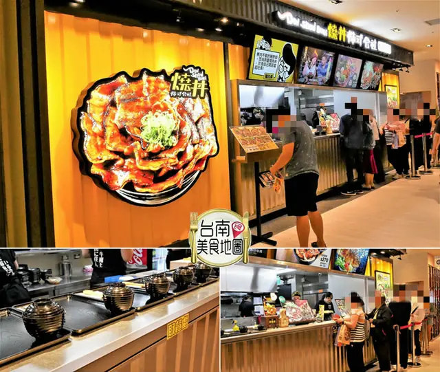 ▲【燒丼】全省共12間分店,每間店有各自的主打特色丼飯! 編編們這次就是衝著只有台南新光西門店,期間限定的『厚切牛舌丼』來的啦σ(ˋ▽ˊ)σ 燒丼株式會社-台南新光西門店位在B2,以工業風為設計概念,貨櫃屋以黃黑色搭配格外分明相當搶眼,十足設計感。