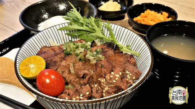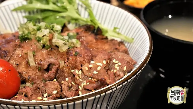 ▲☆台南西門店期間限定的【厚切牛舌丼】(04/23全門市販售-期間限定) 滿滿的牛舌片平舖在飯上,經大火燒烤約7分熟的厚切牛舌~肉質彈牙且飽含油汁! 吃來有著牛舌特有的嚼勁及爽脆口感~舌尖的芝麻味噌與中段醬烤,兩種迥然不同風味呢~
