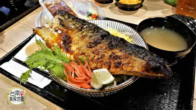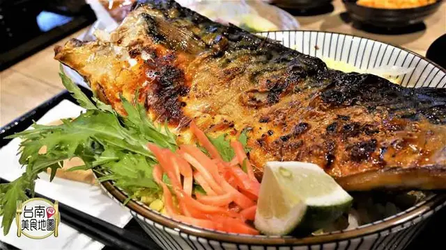 ▲選用來自挪威的【秘烤鯖魚丼】 超厚實的鯖魚可是重達280G耶!表皮用麥芽醬烤的金黃焦脆,超厚實的肉汁吃來油脂豐厚超美味~吃到一半擠上鮮檸檬汁,又是不同風味的表現^^