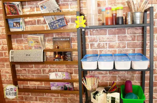 店內一角放置餐具及醬料,旁邊的書報雜誌亦免費提供給內用使用喔~