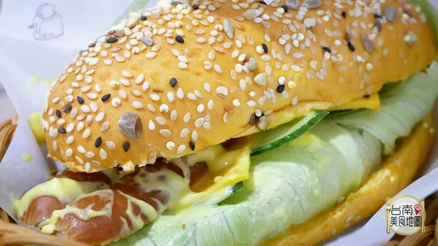 德腸起司蕃茄咕穀堡▶咕穀堡是用蕃茄與穀粉特製的麵包喔,烤的外微脆內軟香~夾入整條切對半的德式香腸、起司及生菜搭配!脆牙彈口的煙燻風味,推薦給較喜重口味的粉粉們喔^^