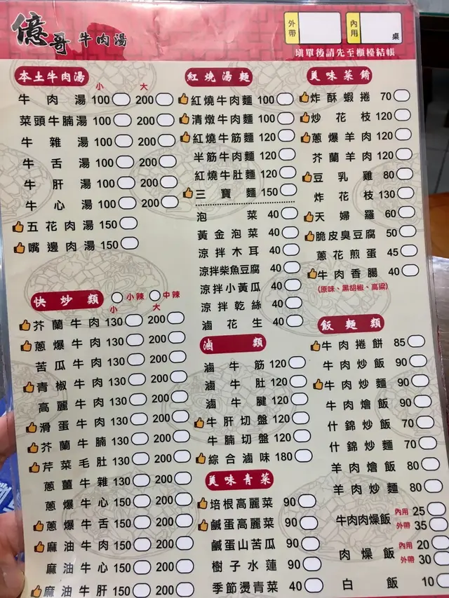 億哥牛肉湯東西超級豐富各種水準都很不錯,也難怪用餐時間人潮都是爆滿,差點就沒座位了,來這邊用餐也不怕等太久,廚房人手很多,上菜都蠻快的,能營業這麼多年果然有兩三把刷子,來吃的顧客感覺都是老顧客了,點餐動作都好快,如果住附近或者來夢時代逛街都可以考慮來這邊用餐,而且比較非用餐時間也可以來這邊吃牛肉湯真是方便,也有賣牛豬肉乾可以帶回家吃~