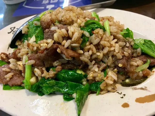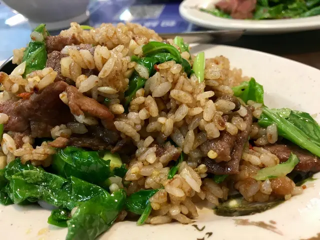 牛肉炒飯也是看著別桌點了太香受不了跟著點的,果然也沒失望,調味雖然跟芥蘭牛肉一樣,可是飯炒得很均勻,每個米粒都有沾上醬香,火力大鍋氣也不錯,水準很夠。