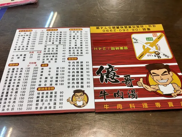 億哥牛肉湯 ☎06-2602990 台南市東區裕農路574號 ⌚24小時營業