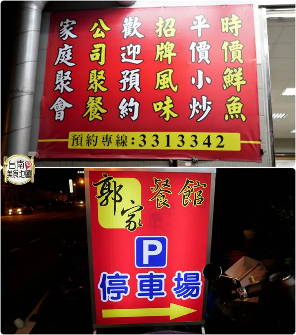 擁有30多年總舖師經驗的阿發師,和曾在漢來掌杓的兒子阿澤師,父子齊心開設主打古早台菜料理的【郭家餐館】 供應的料理除了目錄上固定菜色外,亦有每日至市場採買尚青A新鮮漁貨及時蔬,於黑板上每日變換不同菜單! 除了單點外,當然也有提供合菜及包場服務囉!(包場可容納至90位)有興趣請洽詢店家:(06)331-3342