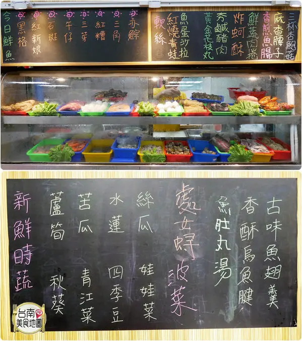 ▲進入前廳,即可見冰櫃裡豐富的各式食材~黑板上更寫下當天採買鮮貨的特製佳餚喔v(=∩_∩=)フ