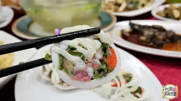 ▲招牌風味【醋溜小卷】 在小卷裡塞入醃的軟脆的小黃瓜等各色食材,片好呈扇形排放,繽紛色彩搭上美乃滋~ 酸甜爽脆好開胃呢!阿發師說這可是他辦桌的拿手好菜之一,更有客人指定必吃喔^^