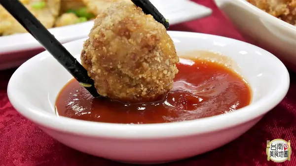 ▲招牌風味【古味蝦棗】 個個一口大小好入口,咬下帶蝦塊口感的濃香風味,微沾些蕃茄醬微酸微甜另有不同滋味呢◐ڡ◐*