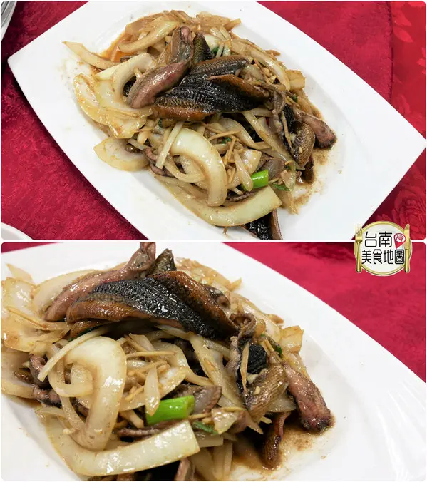 ▲現點現炒【生炒鱔魚】 大火快炒的台南炒鱔魚!一上桌的濃郁香氣讓編編都忍不住垂涎...爽脆滑口拌著洋蔥及些許薑絲,超下飯~❤
