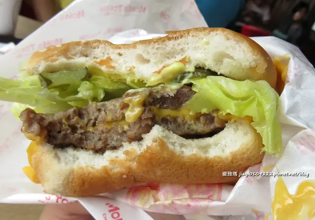 雙層烤肉、起司、生菜、酸黃瓜、特製黃芥末醬,超…美…味!!