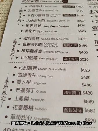 看了一下價目表上所列出來的乳酪蛋糕口味