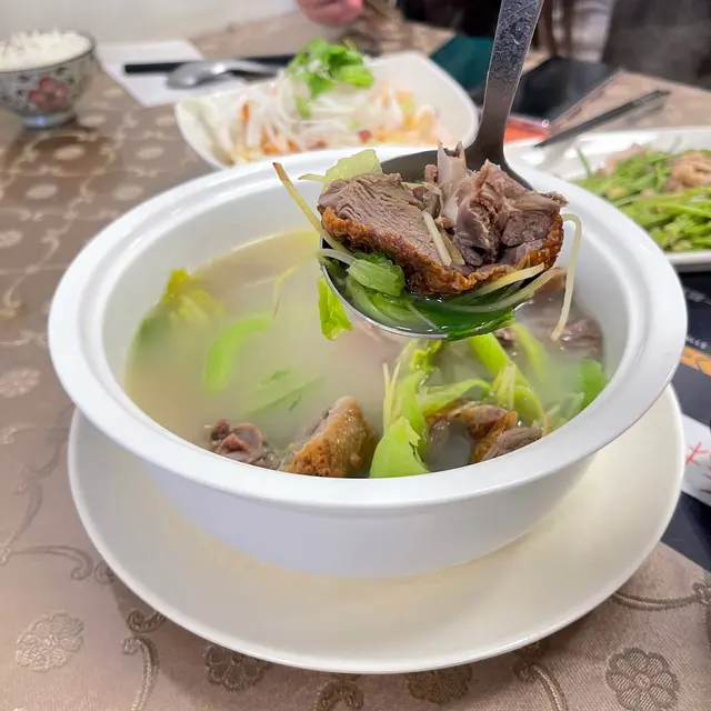 ▼很像港式煲湯,烤鴨吃起來皮很香,肉很嫩,稍微一咬就和骨頭分離,湯喝起來有烤鴨的油脂香,後味帶有芥菜味,不會苦反而襯托湯很濃郁