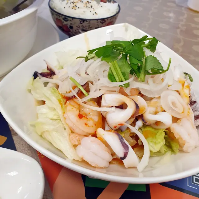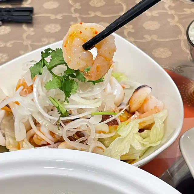 ▼選用新鮮中卷、蝦仁,川燙火候控制的很好,中卷和蝦仁吃起來很嫩,像蘋果一樣的脆彈、有汁