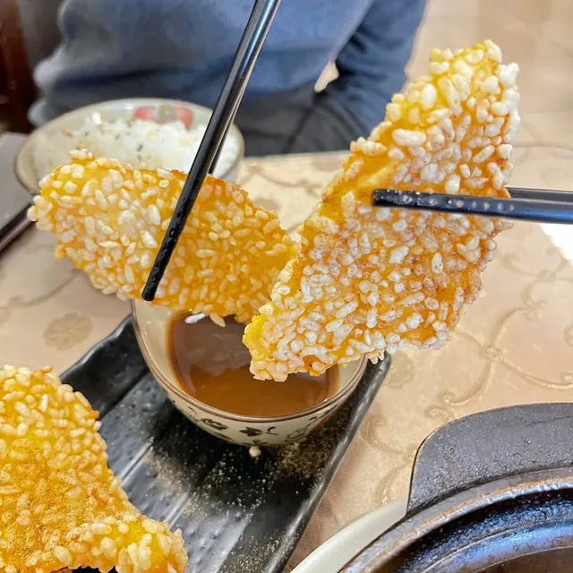 ▼外面包裹的米經油炸過後,非常酥脆,口感和味道就是爆米香,裡面的魚肉細嫩,沾上酸甜的羅望子醬,是一道口感層次豐富的菜色