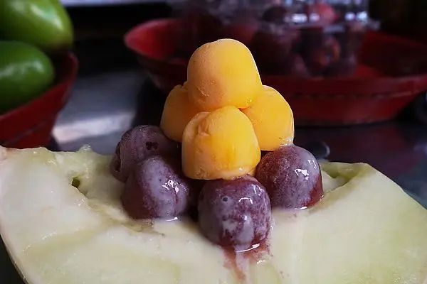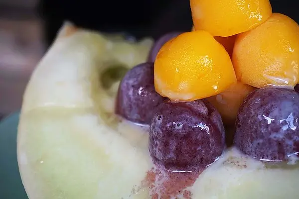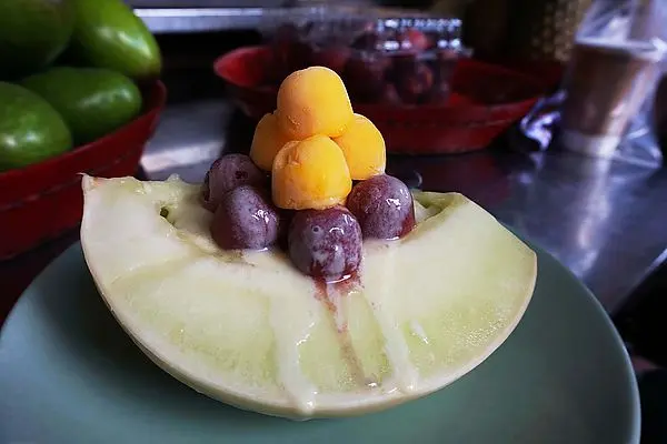 他們不單單只是把哈密瓜切半 上面放幾球冰沙就給客人喔