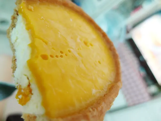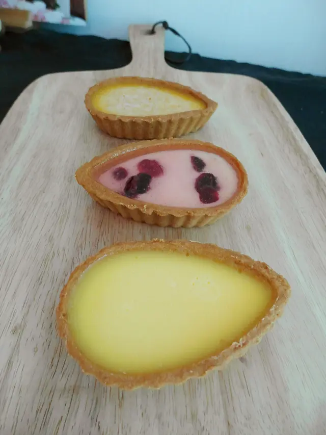 這個大小一個70公克左右 就是不會太小吃完不滿足 也不會太大到吃了會膩的程度妳看看那個塔皮 看起來就很酥脆! 我很怕看到顏色很淺 一拿出來就開始掉屑屑的塔皮
