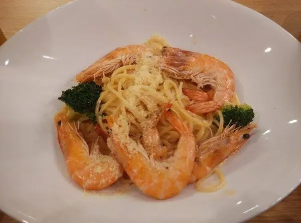 女朋友則是點爆蒜鮮蝦義大利麵升級套餐