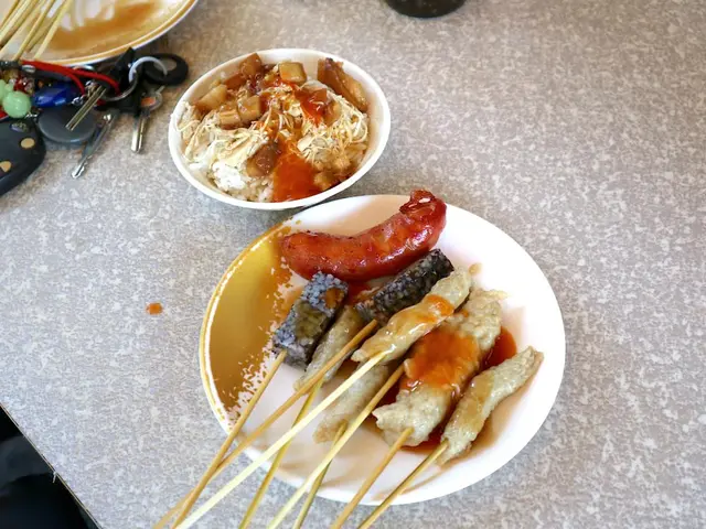 這邊 最多人現場內用 吃的組合就是這樣:一碗肉燥雞絲飯+一盤黑輪,就是澎拜的下午茶!豐盛的程度,真的能當作一頓正餐了! 。٩(ˊᗜˋ*)و✧