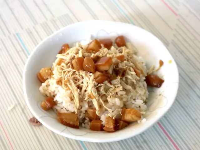 飯的部分,有肉燥飯&雞肉絲飯,有大小碗之分,外帶會多五塊錢!